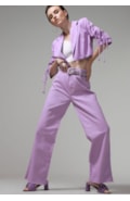 Calça Wide Leg Bainha Desfiada