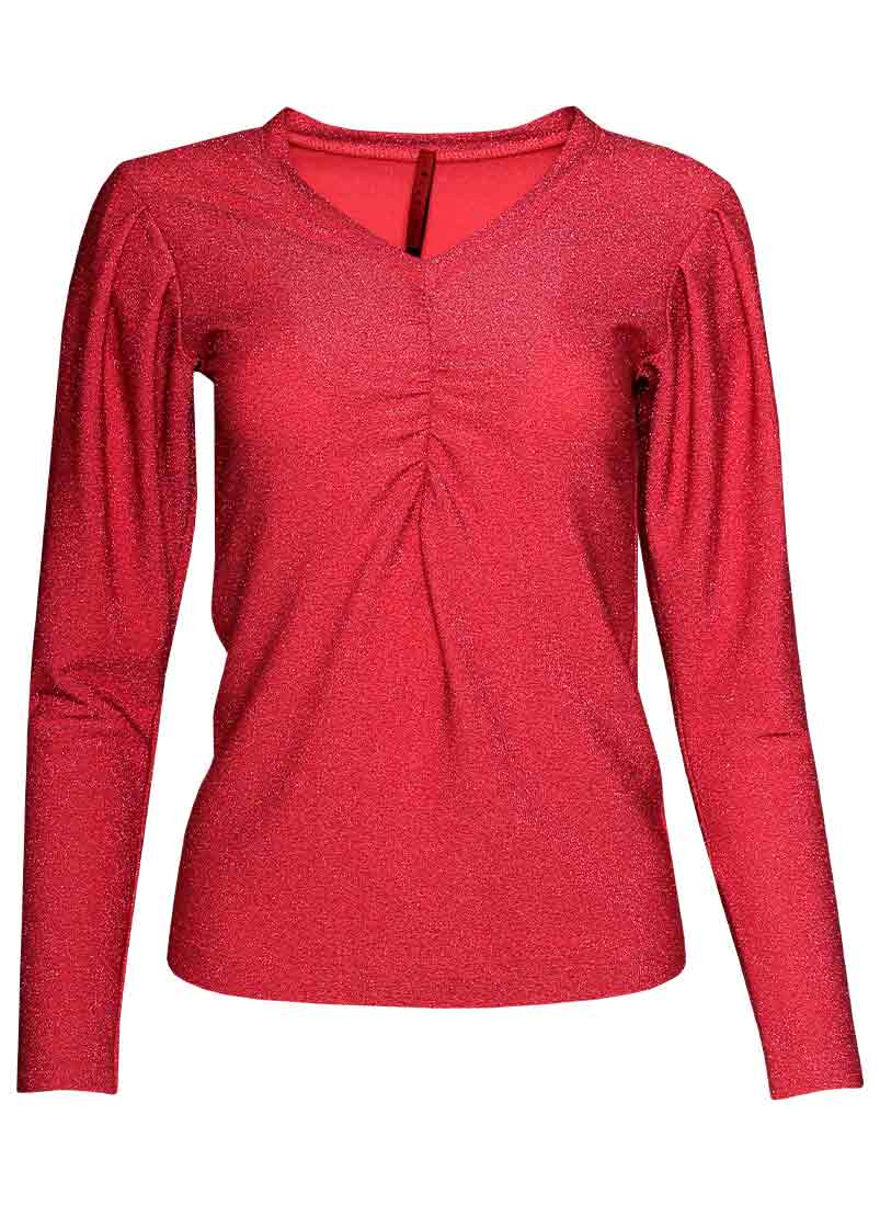 Camisola de malha fios brilhantes decote em bico e manga comprida.