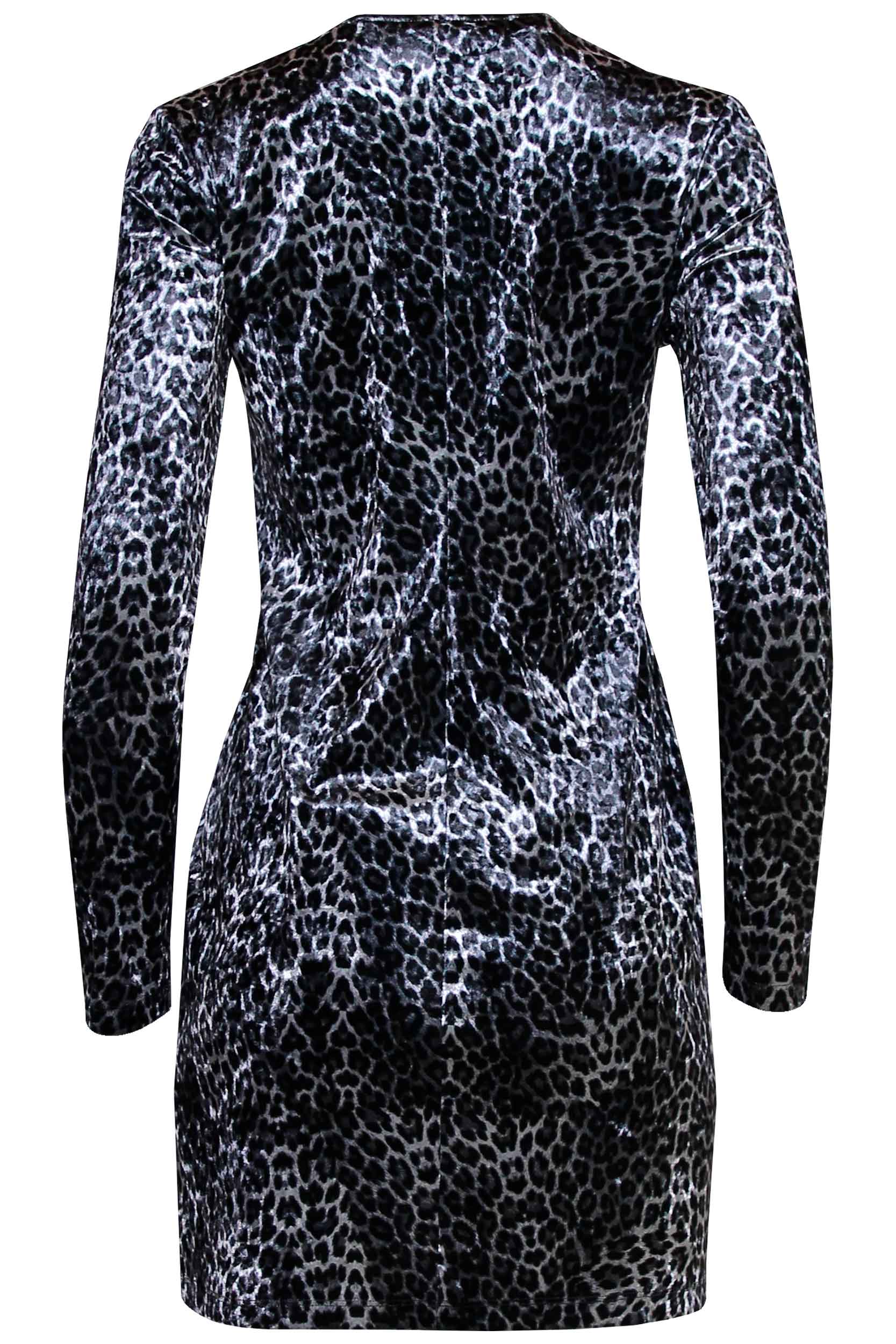 Vestido de veludo com padrão leopardo. Modelo justo.