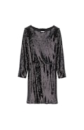 Vestido curto de mangas compridas com lantejoulas. Corte na cintura.