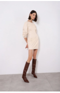 Vestido mini de polipele com manga comprida e efeito abalonado. Fecho traseiro com fecho de correr oculto na costura.